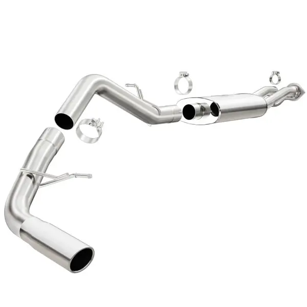 The MagnaFlow Street Series Cat-Back Performance Exhaust System 15734 brings out the personality of your SUV with our signature resonant, powerful engine tone and dyno-proven performance. Thanks to its fast-flowing, mandrel bent 3.5in. main piping and 1 Straight-Through mufflers ending in a Single Passenger Side Rear exit with 4in. Polished Welded-On Single Wall Angle Cut Rolled Edge tips, this SUV exhaust kit has the performance chops to match its sporty sound and appearance. Upgrade your ride to the next level with an exhaust that has the pipes to put other SUV’s to shame. With this system your vehicle will be producing Moderate exterior and Mild interior sound levels while leaving other cars and trucks feeling envious at every stoplight. Exhaust kit 15734 features a cat-back layout that replaces your ride’s stock exhaust components from near the catalytic converter on back. Extensive 3D scanning during development has resulted in a direct-fit design that you can easily install yourself. 15734 is produced using CNC precision robotic manufacturing techniques and is backed by MagnaFlow’s 1-year limited finish warranty and limited lifetime construction warranty.
