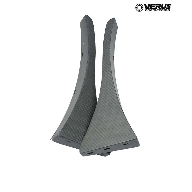 The Verus Engineering Front Splitter Endplates are designed to increase front end downforce without necessitating the need to move the splitter further forward. They are constructed from pre-preg carbon fiber for superior strength to weight. The units are designed specifically to work with our front splitter; but, may work with other units on the market.