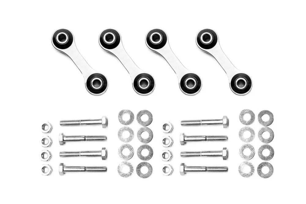 Crafted from durable 6061-T6 aluminum with a hard anodized finish, these endlinks are CNC cut for precision fitment. Featuring urethane bushings, they provide a firm yet compliant connection that enhances suspension feedback without compromising comfort. The set includes four endlinks and all necessary hardware, ensuring a complete front and rear upgrade. Proudly made in the USA, these endlinks are built to last and perform.