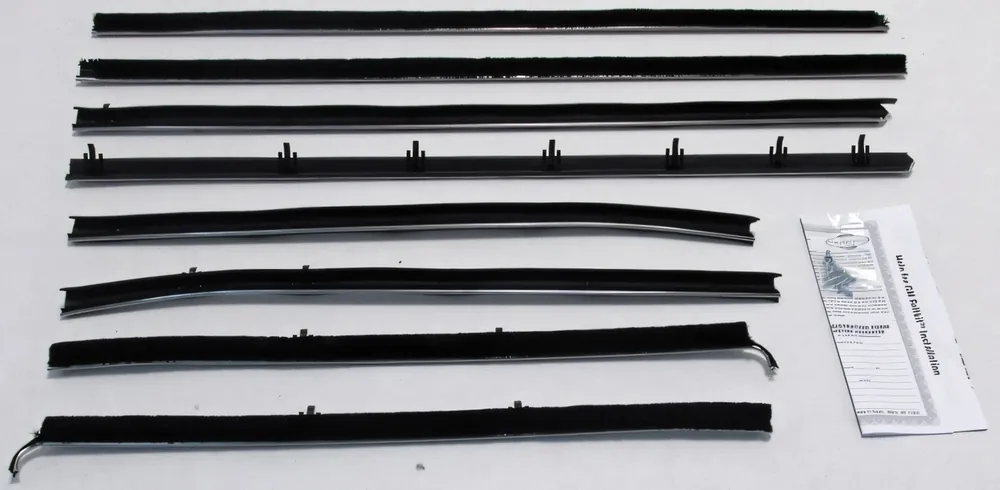 Kits vary by application and may include inner and outer window sweeps, outer sweeps only, or driver- or passenger-side components. Please review the product description carefully to confirm exactly which pieces are included for your specific vehicle.
