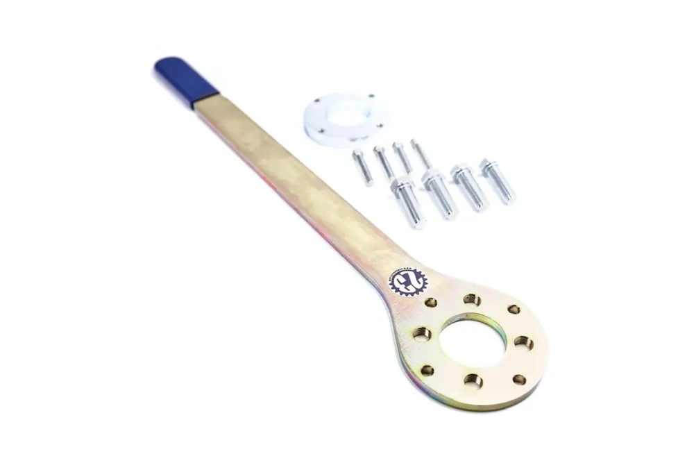 The Company23 Crank Pulley Tool V2 is a must-have for Subaru enthusiasts tackling timing belt or major engine services. This premium tool offers enhanced performance with its upgraded small pin reinforcement ring, designed to loosen even the toughest crank pulley bolts with ease. Its low profile handle allows you to remove the crank pulley without needing to remove the radiator, saving time and effort.