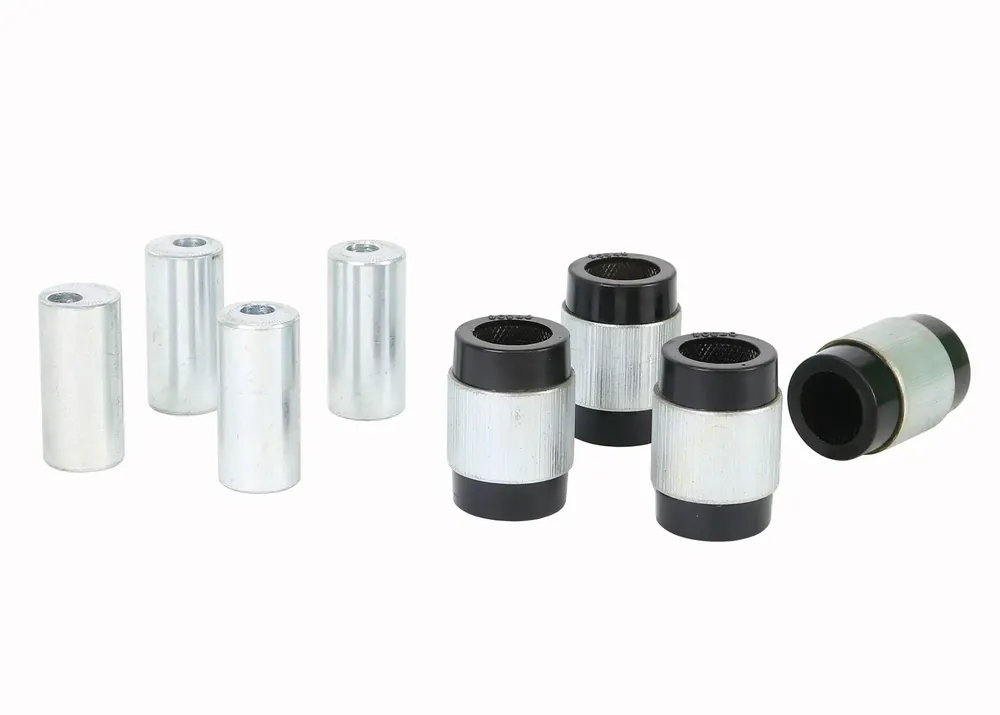Whiteline fixed camber kits provide additional camber angle resulting in increased grip during cornering and traction under power. The kit includes low compliance synthetic elastomer bushings which maintain preferred alignment settings as well as enhanced steering response.