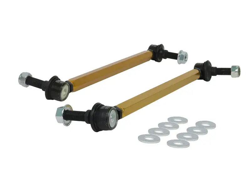 Not many enthusiasts are aware that OE and more importantly aftermarket sway bar effectiveness can be hindered by worn or inadequate mounts, drop links and lateral stoppers. Whiteline adjustable sway bar links are engineered to be up to the task with top spec, light weight componentry combined with a window of adjustability, eliminating sway bar preload on installation but most importantly ensuring the maximum output of the sway bar for improved grip and better handling.