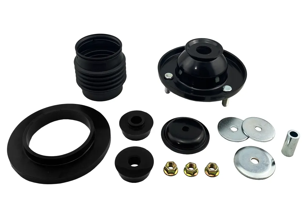 Hard working or lifted commercial or 4×4 vehicles tend to suffer from premature wear of the upper strut mount/ shock absorber bushings. The Whiteline kit contains new strut top, upper strut mount pads and shock absorber pin bushings to restore the strut mount to as new condition.
