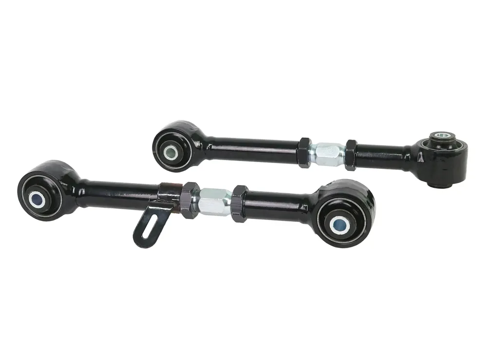 Heavy duty turnbuckle adjustable trailing arms provides incremental on car adjustability of differential pinion angle. This allows you to dial in more or less traction under heavy acceleration. Best matched with Whiteline’s heavy duty lower trailing arms for optimum performance.