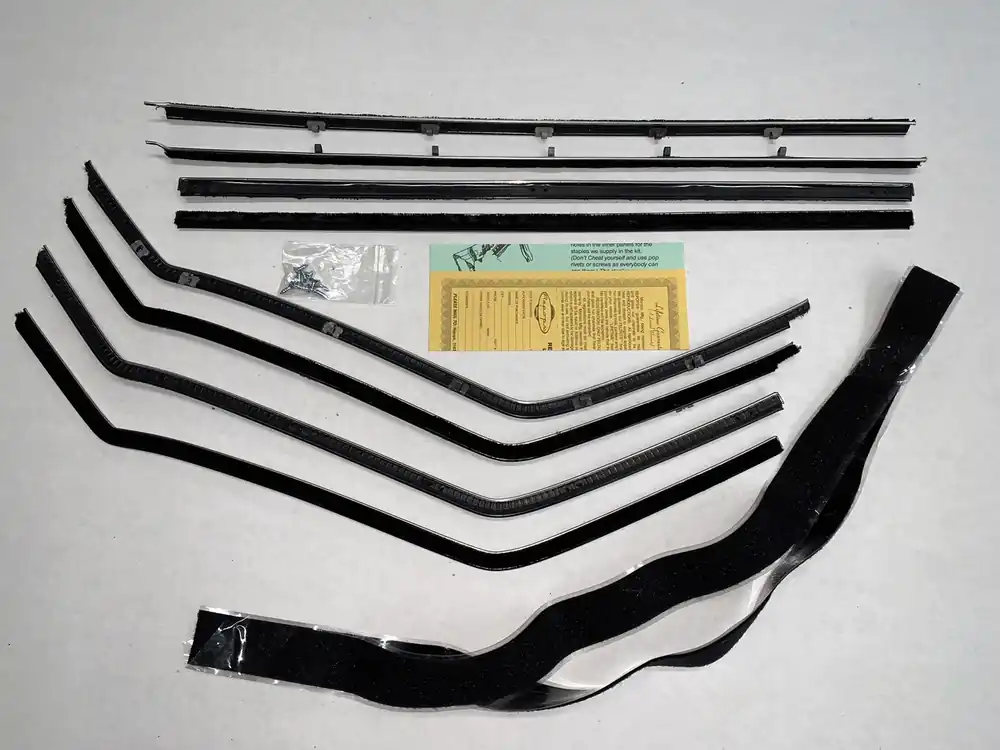 A window sweep kit is a set of replacement seals for classic car doors and windows. These sweeps help keep out water, dust, and wind while allowing the window glass to move smoothly. Replacing worn sweeps restores proper sealing, reduces interior noise, and protects door panels from moisture damage.