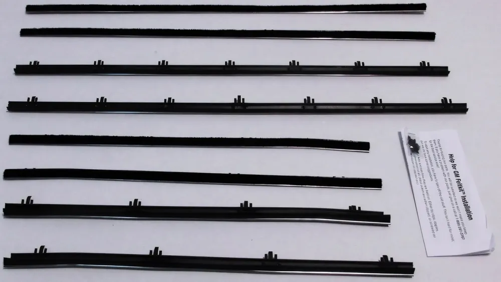 Kits vary by application and may include inner and outer window sweeps, outer sweeps only, or driver- or passenger-side components. Please review the product description carefully to confirm exactly which pieces are included for your specific vehicle.