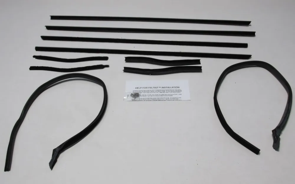 Kits vary by application and may include inner and outer window sweeps, outer sweeps only, or driver- or passenger-side components. Please review the product description carefully to confirm exactly which pieces are included for your specific vehicle.